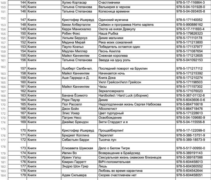 Опубликованный ранее журналистом Александром Плющевым список содержит более 250 книг. В перечень «запрещенной литературы» попала даже классика: «Неточка Незванова» Федора Достоевского, «Портрет Дориана Грея» Оскара Уайлда, «Орландо» Вирджинии Вульф и работы других известных писателей.