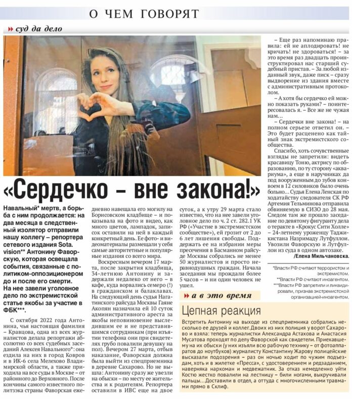 «Сердечки вне закона. Это тайный знак экстремистского сообщества» — в свежем выпуске «Собеседника» рассказали о новых судебных порядках в России