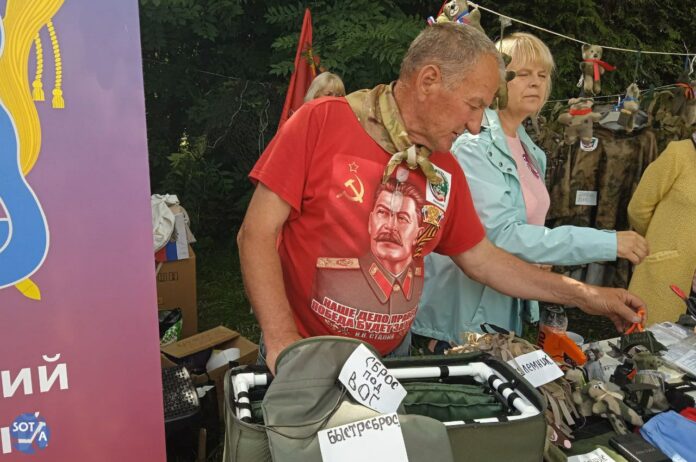 Рядом волонтеры движения «Сети для СВОих» уговаривали прохожих принять участие в денежном сборе помощи бойцам фронта.
