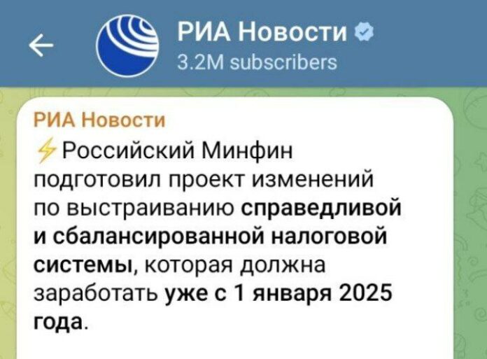 🔹 О «справедливой и сбалансированной налоговой системе» пишет РИА;