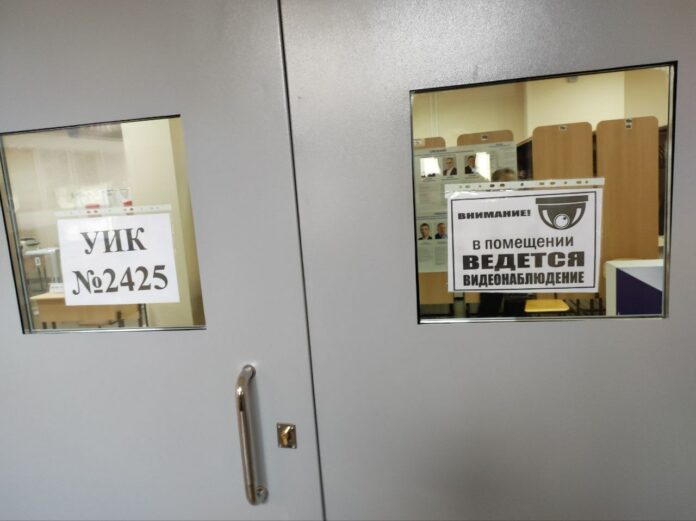 Стекла в дверях УИК 2425 в подмосковном Пушкино заклеили указателями