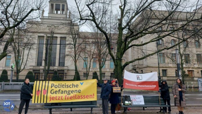 Мероприятие прошло напротив посольства России в Берлине. Организатором выступила соосновательница немецкого «Мемориала» Ута Герлант.