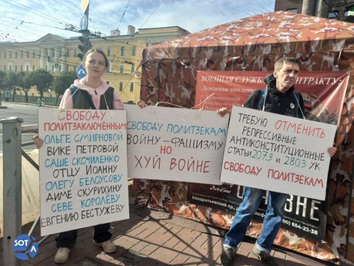 17 сентября петербургские активисты Иоффе и Марина Загороднева вышли в антивоенный пикет к палатке по набору на контрактную службу на Площади Ленина. В руках они держали плакаты с именами политзаключенных, обвиняемых или осужденных по «антивоенным» статьям. Спустя несколько часов их задержала полиция.