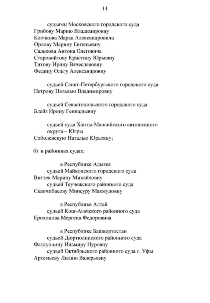 НовостиСудью Ольгу Федину, вынесшую приговор Надежде Буяновой, действительно повышают в должности Новости Судью Ольгу Федину, вынесшую приговор Надежде Буяновой, действительно повышают в должности Sota Vision 12.11.2024 29 Поделиться TwitterTelegramFacebookPinterestWhatsAppCopy URL Ее назначили судьей Мосгорсуда, следует из указа Путина от 30 сентября. Поделиться TwitterTelegramFacebookPinterestWhatsAppCopy URL Предыдущая статьяДело Надежды Буяновой — возможно, последнее в этом суде для Ольги Фединой. Судью может ожидать повышение до Мосгорсуда Следующая статьяСлушателей, которых задержали за крики «Позор!» в адрес судьи Фединой, отпустили без составления протокола ЧИТАТЬ ЕЩЕ Новости «Если не подпишу бумаги, которые они мне дают, меня забьют здесь током». В Екатеринбурге допросили Романа Паклина — фигуранта «Тюменского дела» 05.11.2025 Новости Незрячий крымчанин Александр Сизиков может находиться в СИЗО Симферополя 05.11.2025 Новости СМИ: Анджелина Джоли посетила Херсон 05.11.2025 Популярное «Если не подпишу бумаги, которые они мне дают, меня забьют здесь током». В Екатеринбурге допросили Романа Паклина — фигуранта «Тюменского дела» 05.11.2025 Незрячий крымчанин Александр Сизиков может находиться в СИЗО Симферополя 05.11.2025 СМИ: Анджелина Джоли посетила Херсон 05.11.2025 Аглая Тарасова признала вину в контрабанде наркотиков 05.11.2025 Загрузить больше