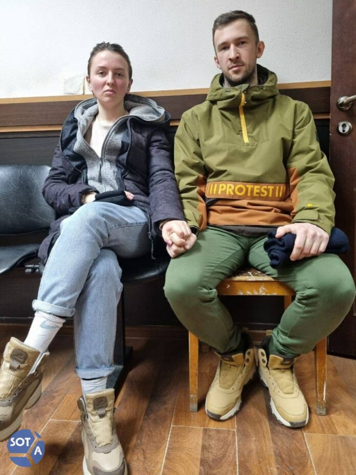 Как рассказали SOTAvision молодые люди, в отделении им показали фото и видео, на которых Сергей клеит листовку, а Алина стоит рядом. Задержанные отказывались отвечать на вопросы силовиков без адвоката, ссылаясь на ст. 51 Конституции. Защитника Алексея Аванесяна не пускали в ОВД и вводили в заблуждение, что Альбовы отказались от его помощи. Самим задержанным полицейские говорили, что адвокат в этом деле не нужен и разберутся без него.