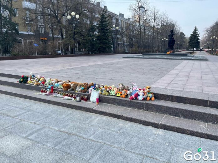 Мемориал с цветами появился на Соборной площади города, пишет Go31. Помимо цветов, люди несут детские игрушки в память о погибших детях.