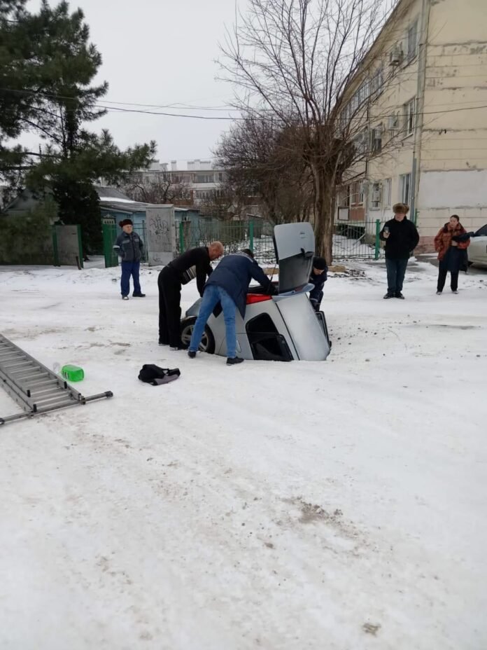 Замглавы городской администрации Роман Ткаченко сообщил, что автомобиль упал в водопроводный колодец, в котором коммунальщики недавно меняли канализационную трубу.