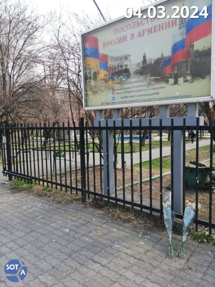 Еще вчера у ворот российского консульства в Армении лежали горы цветов, свечи и лампады, на ограде висели плакаты и фотографии убитого политика. По словам очевидцев, еще в три часа ночи мемориал был на месте, но к утру там уже ничего не осталось.