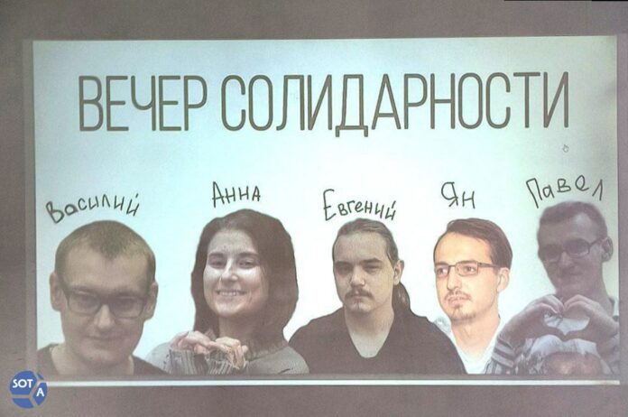 Провела вечер команда поддержки политзэков «Письма и Импровизация». Письма писали Василию Неустоеву, Анне Архиповой, Евгению Затееву, Яну Ксенжепольскому и Павлу Синельникову. Они больше года находятся в СИЗО.
