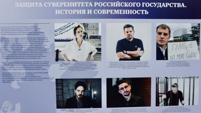 Отдельный стенд организаторы посвятили «иностранным агентам». Рядом с портретами Марии Певчих, Максима Каца, основателя Gulagu net Владимира Осечкина и других «иноагентов» разместили информацию о том, что «среди них можно встретить недобросовестных журналистов, политических радикалов, псевдоправозащитников» и прочих лиц, «использующих свою былую популярность для продвижения деструктивных идей».