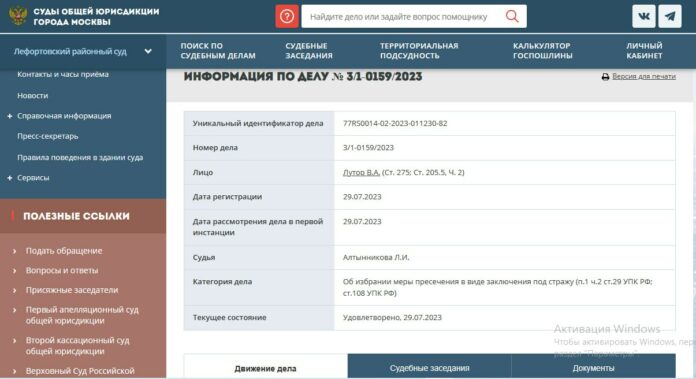 Такое постановление вынес Лефортовский суд города. Предположительно речь идет о банковском работнике, петербуржце Вячеславе Луторе.