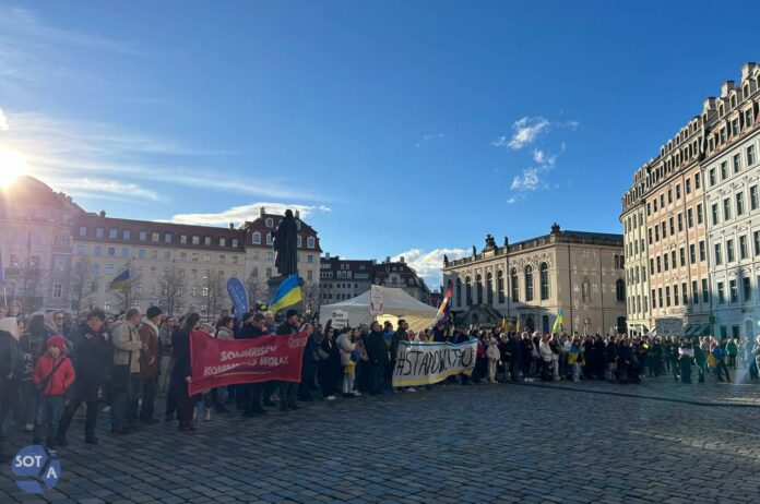 НовостиВ немецком городе Дрезден также прошла акция, посвященная второй годовщине начала путинской... НовостиФото В немецком городе Дрезден также прошла акция, посвященная второй годовщине начала путинской агрессии в Украине Sota Vision 24.02.2024 53 Поделиться TwitterTelegramFacebookPinterestWhatsAppCopy URL SOTAvision Собравшиеся также вспоминали Алексея Навального. «Он не умер, его убили», — гласит надпись рядом с поминальной лампадкой на фото. Поделиться TwitterTelegramFacebookPinterestWhatsAppCopy URL Предыдущая статьяКак задерживали на акции жен мобилизованных в МосквеСледующая статьяРоссияне в Лимассоле вышли к российскому консульству с антивоенной акцией ЧИТАТЬ ЕЩЕ Новости Украина готова провести выборы в течение 60-90 дней при поддержке США и ЕС — Зеленский 09.12.2025 Новости На активистку Сашу Казанцеву составили два протокола о «пропаганде ЛГБТ» 09.12.2025 Новости Кремлеботы атаковали Мизулину после критики блокировки Roblox 09.12.2025 Популярное Украина готова провести выборы в течение 60-90 дней при поддержке США и ЕС — Зеленский 09.12.2025 На активистку Сашу Казанцеву составили два протокола о «пропаганде ЛГБТ» 09.12.2025 Кремлеботы атаковали Мизулину после критики блокировки Roblox 09.12.2025 «Как человек проживает свою единственную жизнь в закрытой системе» — в Москве открылась выставка, посвященная жизни в ПНИ 09.12.2025 Загрузить больше