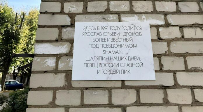 «Здесь в 1991 году родился Ярослав Юрьевич Дронов, более известный под псевдонимом SHAMAN: Шаляпин наших дней, певец России славной и гордый лик», — написано на табличке.