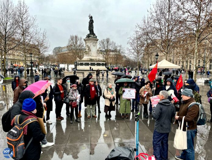 Активисты вышли на Площадь Республики с призывом к властям Франции и Евросоюза больше поддерживать российских уклонистов и дезертиров: