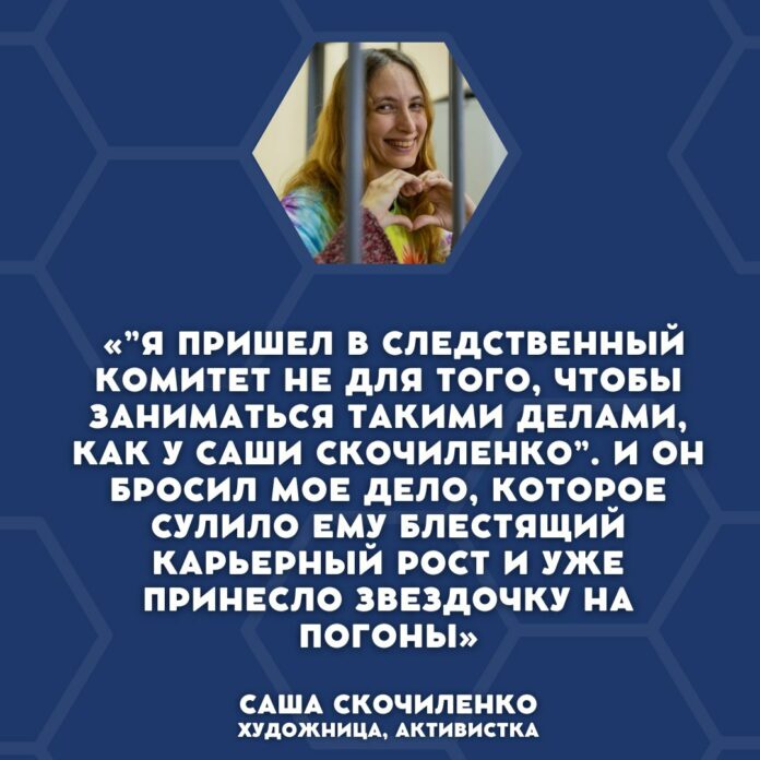 КарточкиВ последнем слове Скочиленко рассказала, что первый следователь по ее делу уволился... Карточки В последнем слове Скочиленко рассказала, что первый следователь по ее делу уволился и пошел работать в «Военторг» Sota Vision 16.11.2023 62 Поделиться TwitterTelegramFacebookPinterestWhatsAppCopy URL Поделиться TwitterTelegramFacebookPinterestWhatsAppCopy URL Предыдущая статьяСаша Скочиленко, судя по всему, в прекрасном расположении духа Следующая статьяСаша Скочиленко выступила с последним словом ЧИТАТЬ ЕЩЕ Карточки День в истории. 34 года с захвата сепаратистами власти в Чечне и начала ее отделения от России 06.09.2025 Карточки Что запомнилось за прошедшую неделю? 05.09.2025 Карточки День рождения Марии Пономаренко — что помогает ей в тюрьме 05.09.2025 Популярное От колонии до Вильнюса: истории освобожденных белорусских узников, вывезенных в Литву 07.11.2025 В Риге 10 тысяч человек вышли на улицу против отказа Латвии от конвенции о борьбе с домашним насилием 06.11.2025 Активистку Зульфию Ситдикову повторно приговорили к 10 суткам ареста за возложение цветов к мемориалу жертвам политических репрессий 06.11.2025 00:59:22 «Вечер писем» политзаключенной Елене Абрамовой 06.11.2025 Загрузить больше