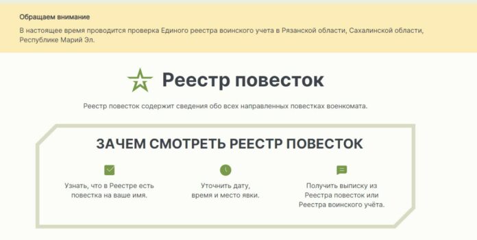 Проверка Единого реестра воинского учета началась в Рязанской области, Сахалинской области и Республике Марий Эл, говорится в сообщении на сайте реестрповесток.рф.
