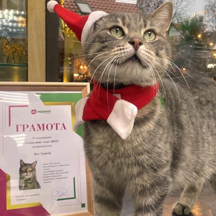 Кот Сергей прибрел в магазин «Юмаркет» три года назад и стал местной достопримечательностью: к нему даже водили туристов экскурсоводы. В магазине животному выделили «рабочий» уголок с табличкой «Почетный сотрудник». К сожалению, в какой-то момент «гражданин Ж.» написал на Сергея донос и того «уволили» по требованию Роспотребнадзора.