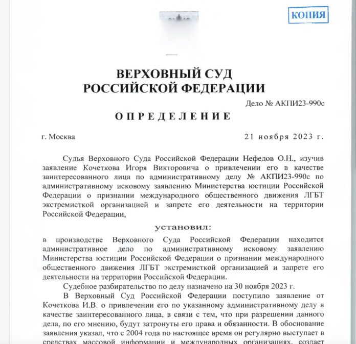 Верховный суд не разрешил активисту Игорю Кочеткову вступить в дело об «экстремистском» ЛГБТ-движении
