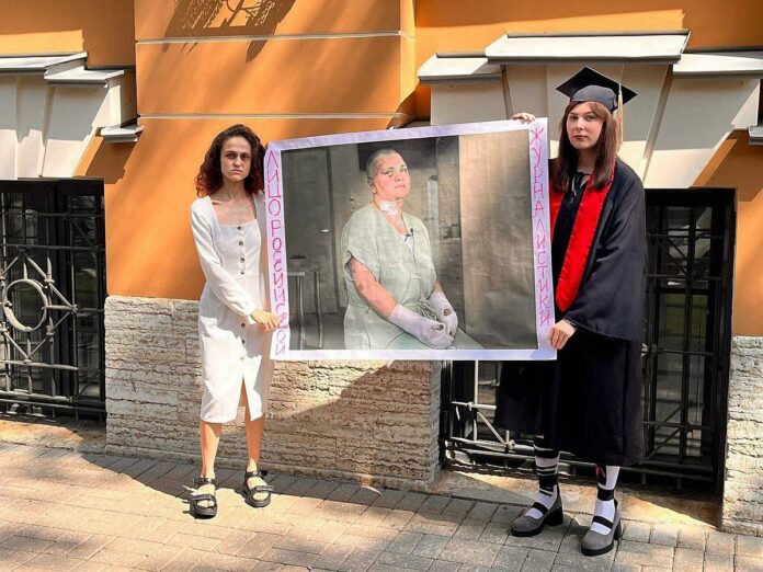 6 июля Елизавета с одногруппницей организовали акцию в поддержку Елены Милашиной, ранее жестоко избитой в Чечне.