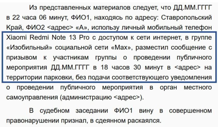 Согласно решению суда, мужчина разместил сообщение с призывом к акции на парковке в группе «Изобильный» в мессенджере «Макс». Заявку на проведение митинга в администрацию мужчина не подавал, отметил суд.