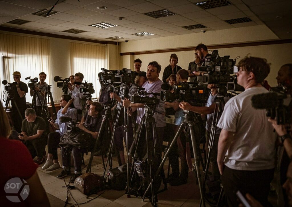 ФотоФоторепортаж: журналисту The Wall Street Journal Эвану Гершкович утвердили арест Фото Фоторепортаж: журналисту The Wall Street Journal Эвану Гершкович утвердили арест Sota Vision 22.06.2023 46 Поделиться TwitterTelegramFacebookPinterestWhatsAppCopy URL Евгений Куракин На заседании в Мосгорсуде присутствовали российские коллеги и американский посол Линн Трейси. Фоторепортаж подготовил корреспондент SOTA Евгений Куракин. Поделиться TwitterTelegramFacebookPinterestWhatsAppCopy URL Предыдущая статьяЖурналист WSJ Эван Гершкович останется в СИЗО минимум до 30 августаСледующая статьяЗнаток «ФСО» неудачно попытался закрыть спиной кортеж Путина от объектива SOTA ЧИТАТЬ ЕЩЕ Новости В Москве проходит прощание с блогершей Ириной Небогой 20.11.2025 Новости Более миллиона рублей собрали на седьмом акционе в поддержку политических заключенных 14.11.2025 Важное Суд оставил в силе приговор Анне Александровой в 5 лет и 2 месяца колонии по делу о военных «фейках» 06.11.2025 Популярное Появился текст предполагаемого мирного плана США по урегулированию войны в Украине 20.11.2025 Axios: Киев готов к диалогу по новому мирному плану США 20.11.2025 К памятнику Лесе Украинке в Москве принесли цветы и мягкую игрушку после удара по Тернополю 20.11.2025 ЕС ввел санкции против сотрудников СИЗО в Таганроге, где погибла украинская журналистка Виктория Рощина 20.11.2025 Загрузить больше